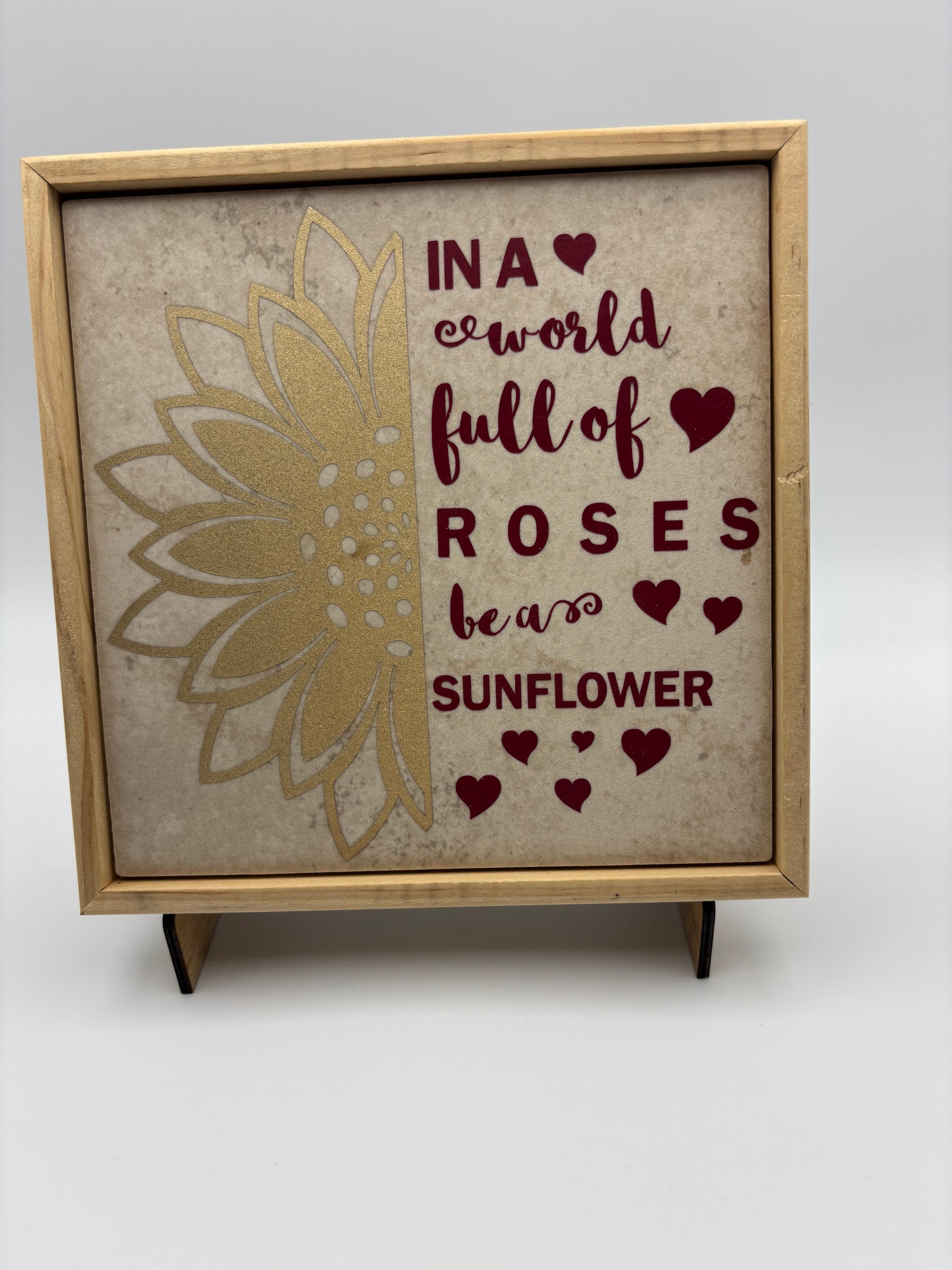 In a world of roses framed ceramic tile. Measures 8 1/4 in x 8 1/4 inches.
